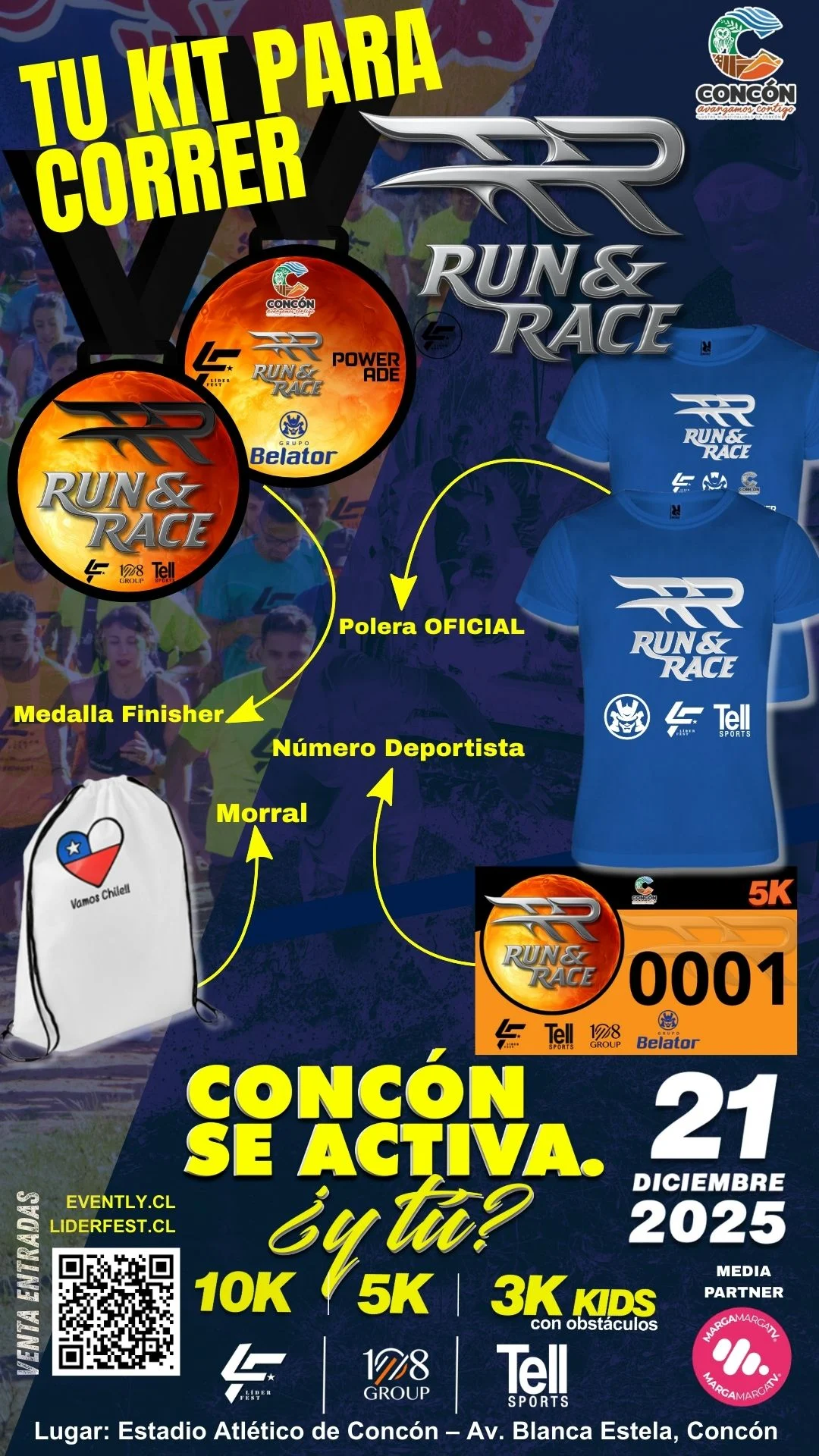 Se realizarán exclusivamente en: www.evently.cl (RUN&RACE LIDERFEST)